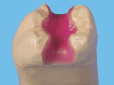 Even in inlays, the cavities can be precisely prepared using Elaflex. This way, modeling is simplified. | Elaflex is so flexible that the wax coping is not deformed when it is removed. | Elaflex is self-insulating on all metal parts that are polished to high luster. |