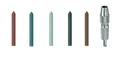 For polishing of the occlusal surface. The tip of the Abraso-Gum has a very fine diameter of only 3mm. It finishes the occlusion and grooves very precisely. The system has 3 different textures ranging from Semi-Precious (PM) to Non-Precious (NP). The matching holder enables you to quickly exchange the Abraso-Gum, holds it securely, and prevents loosening.