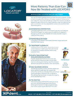 The new LOCATOR Angled Abutment connects clinicians to a greater number of edentulous patients by offering an affordable, simple and flexible solution that meets their unique dental healthcare needs. This innovation features 15 degrees of angle correction and makes it possible to treat more patients than ever in combination with the LOCATOR Removable Extended Range or the LOCATOR FIXED restorative systems.